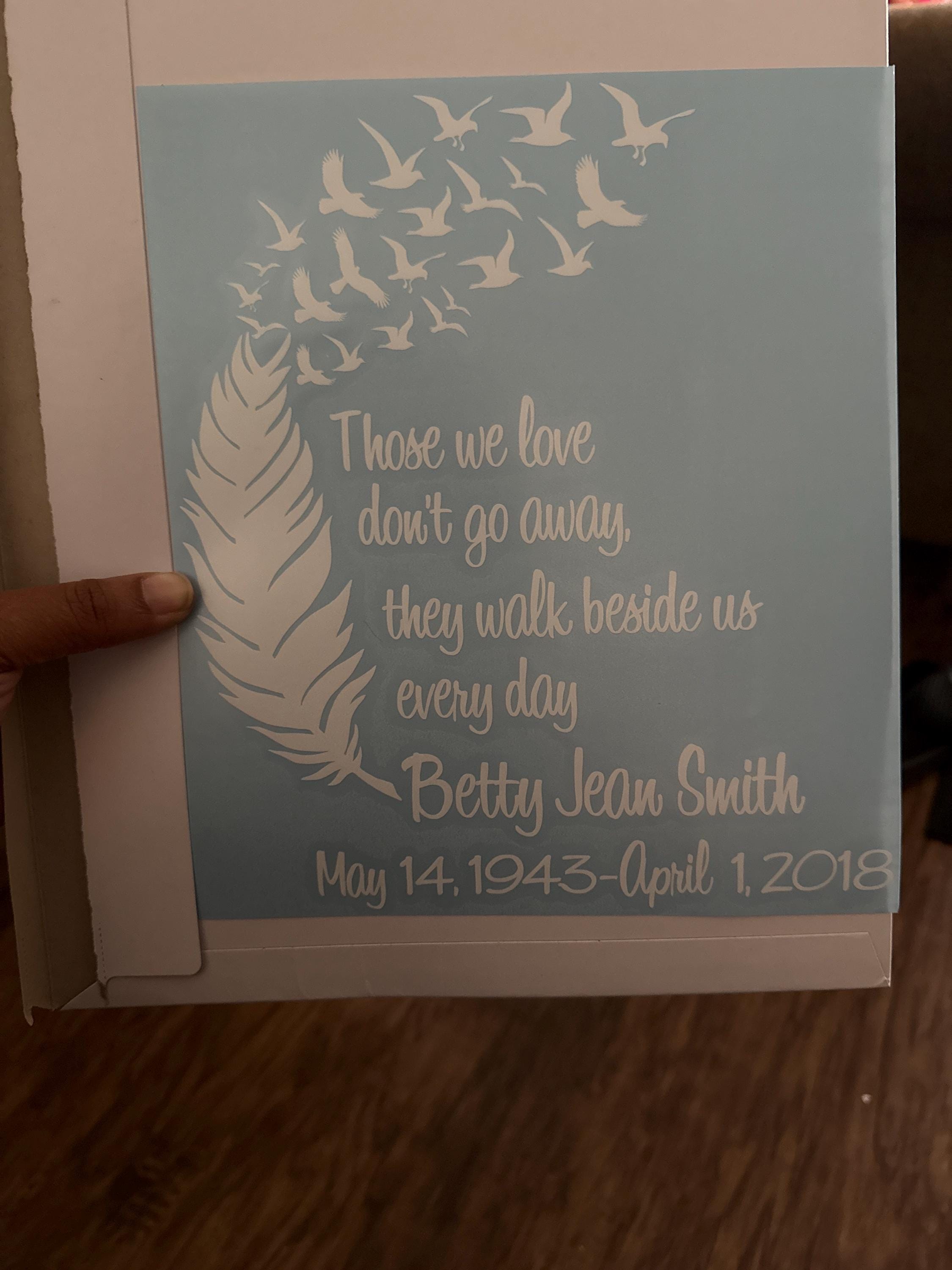 If you have any questions about our in memory of car decal, please don't hesitate to ask! Also if you do not see what you are looking for and would like something custom, please send us a message. We love making custom designs!