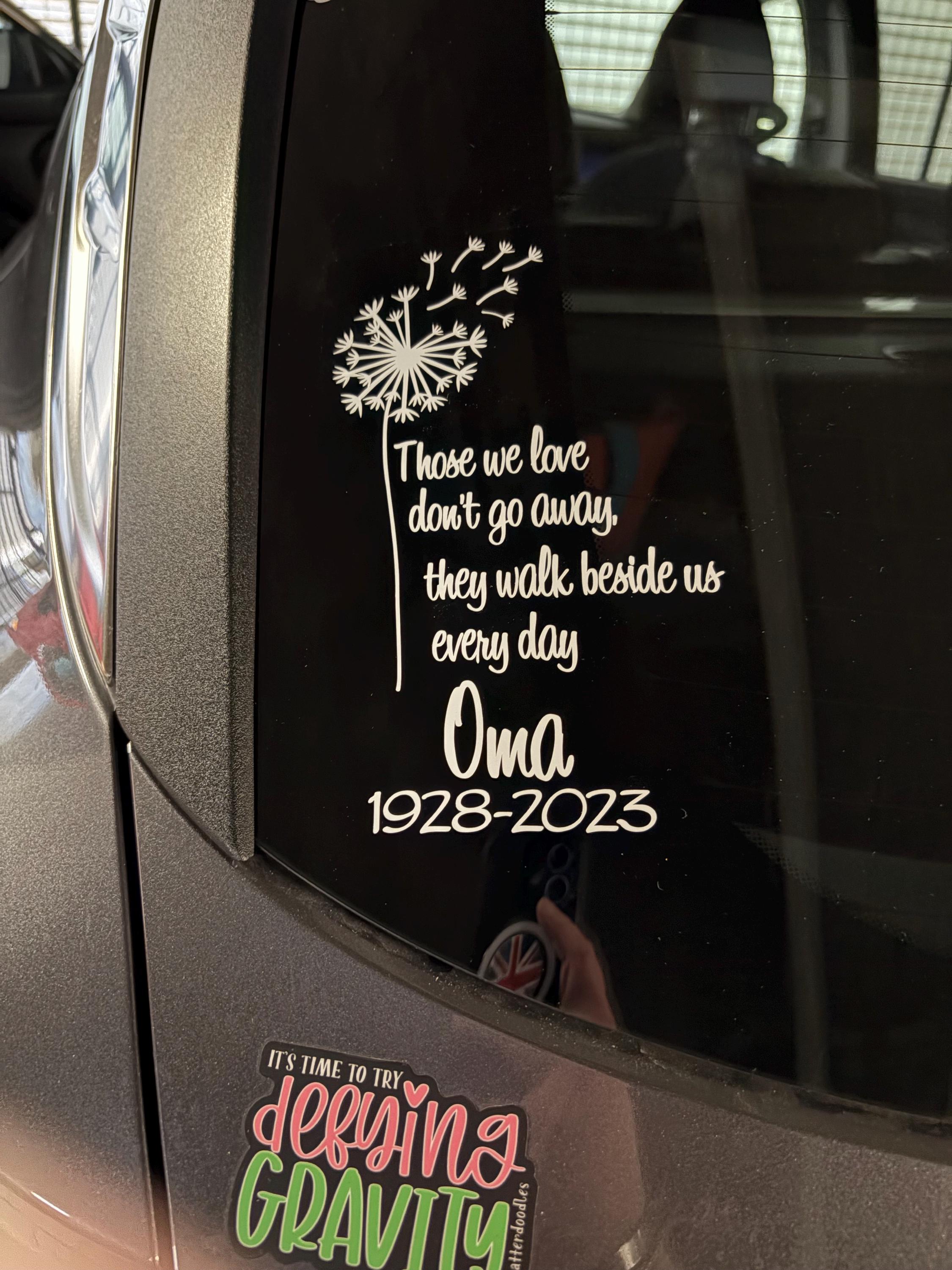 If you have any questions about our in memory of car decal, please don't hesitate to ask! Also if you do not see what you are looking for and would like something custom, please send us a message. We love making custom designs!