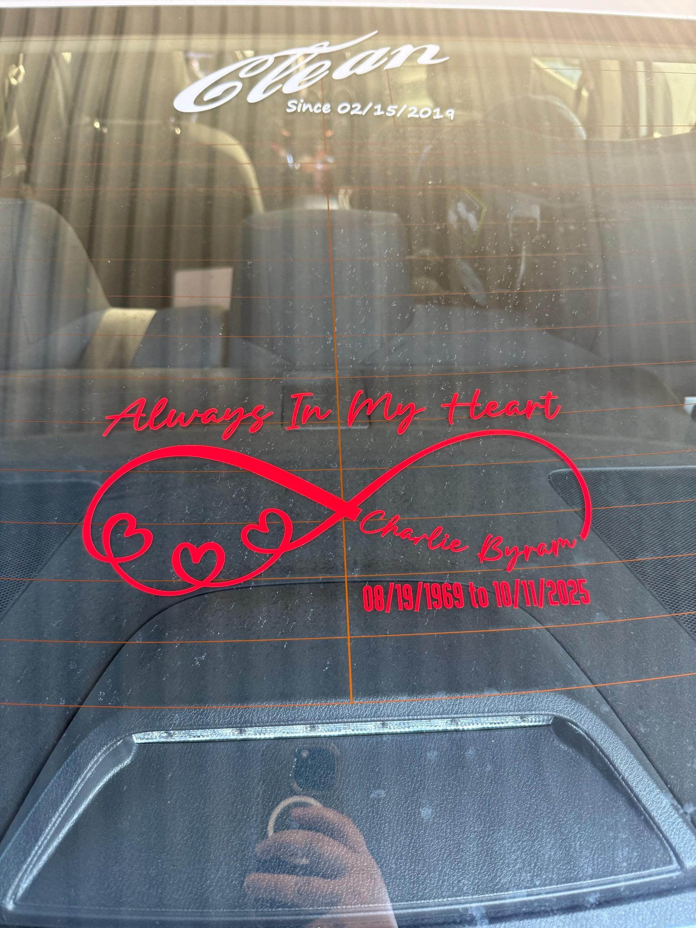 If you have any questions about our in memory of car decal, please don't hesitate to ask! Also if you do not see what you are looking for and would like something custom, please send us a message. We love making custom designs!