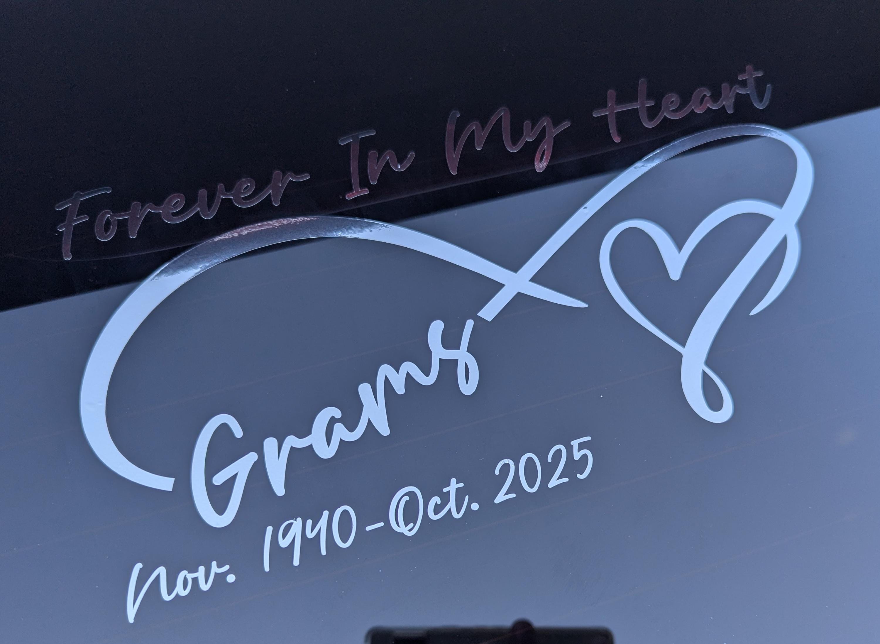 If you have any questions about our in memory of car decal, please don't hesitate to ask! Also if you do not see what you are looking for and would like something custom, please send us a message. We love making custom designs!
