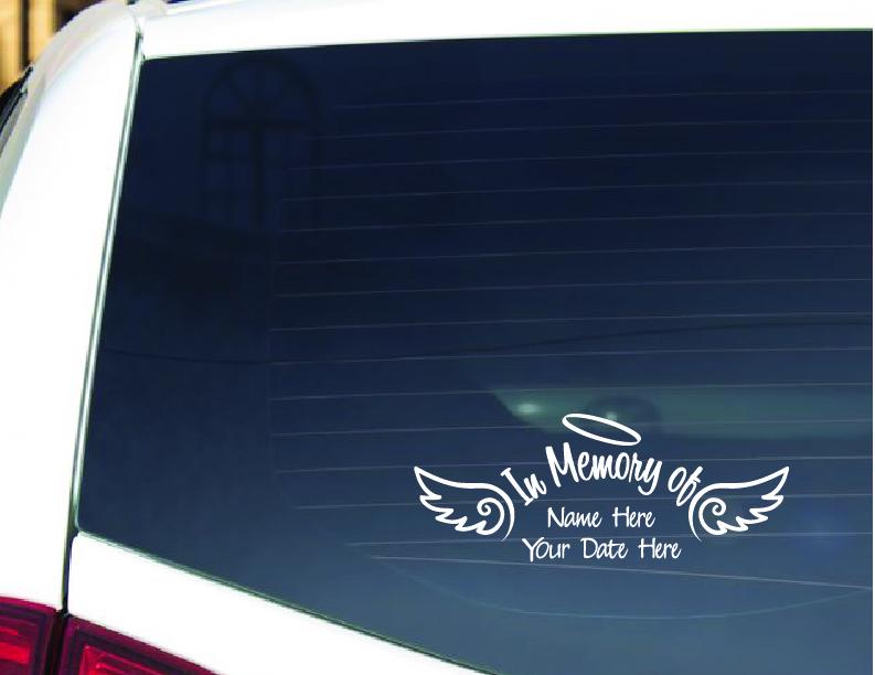 Personalized In Loving Memory Car Decal – Angel Wings, Custom Name, Human Memorial