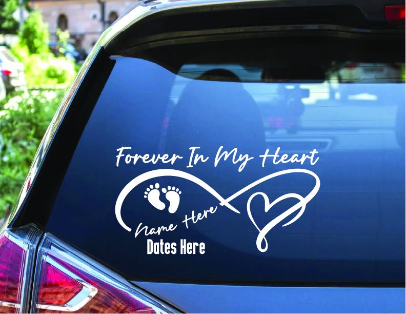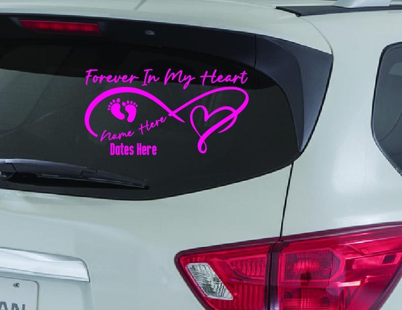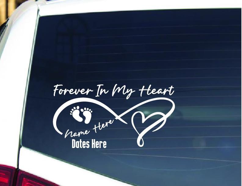 Why choose this memorial decal? Handcrafted from premium outdoor-grade vinyl, this decal is designed to withstand the elements, meaning it won't fade or peel on your car window or outdoor surface. Unlike standard stickers, our precision-cut vinyl has no background, resulting in a clean, painted-on look that honors your baby with dignity.